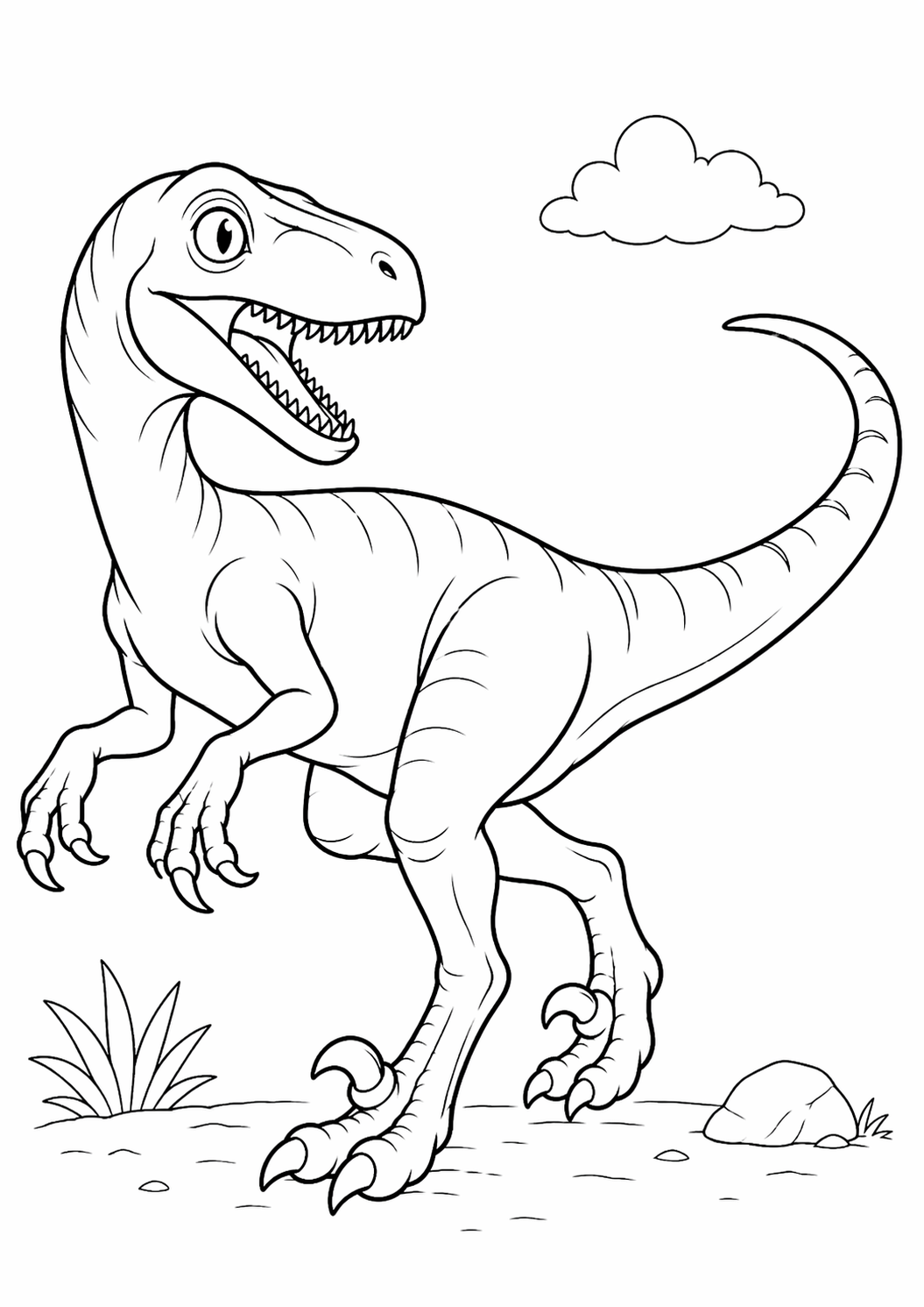 O desenho de dinossauro velociraptor para colorir e imprimir é uma excelente atividade para crianças que se interessam pelo mundo pré-histórico. Com um visual marcante e fácil de reconhecer, o velociraptor chama a atenção e desperta a curiosidade logo no primeiro contato.
